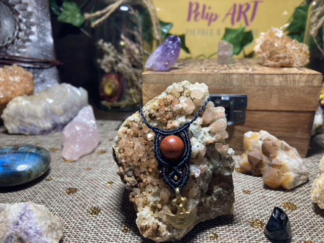 Pierre Jaspe rouge, perles et breloque en laiton.